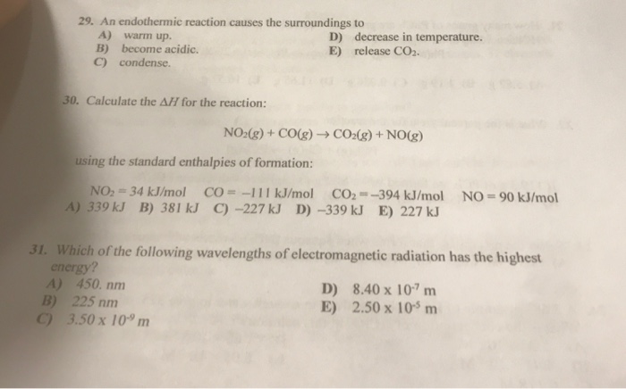 Solved 29 An Endothermic Reaction Causes The Surroundings Chegg Com